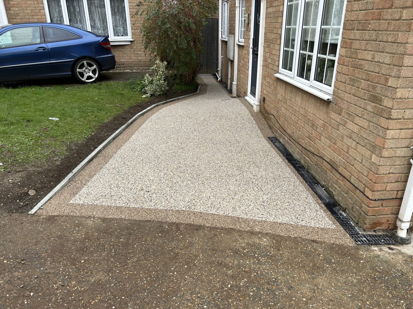Our resin designs combine practicality with elegance. From the classic elegance of brick borders to the sleek modernity of resin finishes, our portfolio showcases the craftsmanship and excellence of our resin driveway installations.