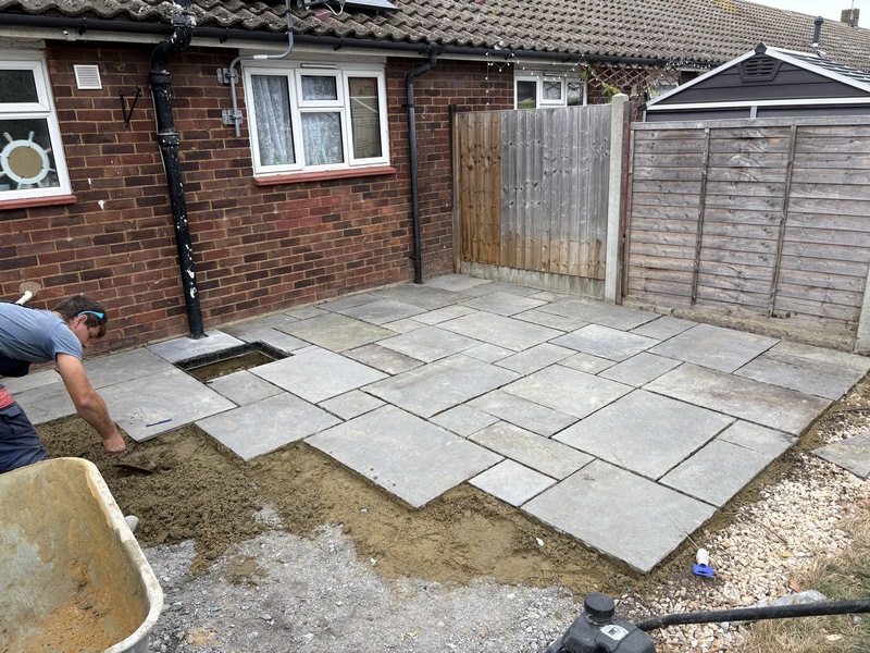 Our team recently completed a stunning garden transformation in Rochford, featuring a brand-new sandstone patio and block paved driveway extension. The clients wanted to maximise their outdoor space by creating a practical, low maintenance area for entertaining, while also improving the functionality of their driveway for easier parking access.