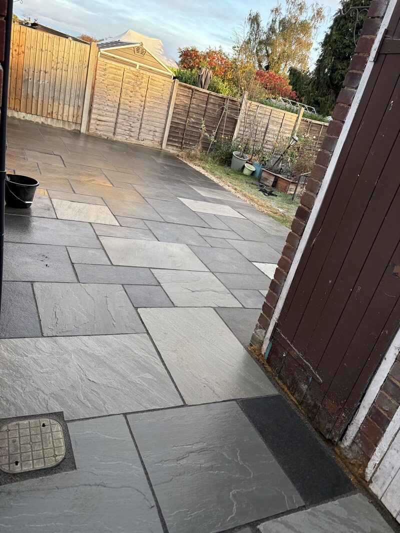 5. Finishing Touches: Once both areas were installed, we brushed kiln-dried sand into the block paving joints and applied a jointing compound to the sandstone patio, leaving the property looking refreshed and complete.